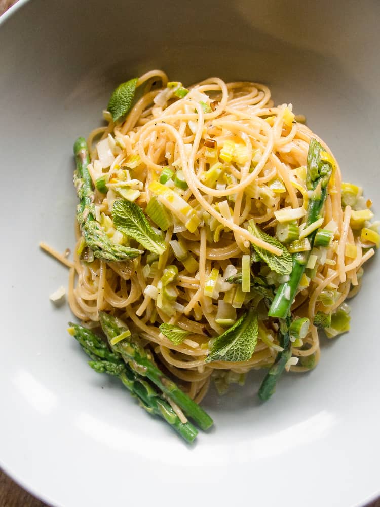 Mint Asparagus Leek Pasta